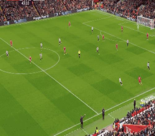 第43分钟,阿利松送出长传,埃基蒂克快速前插后,一脚精彩的捅射,再次洞穿纽卡斯尔的球门。